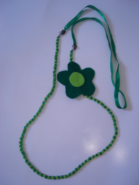 COLAR EM MIÇANGAS E FELTRO COR: VERDE R$ 3,00