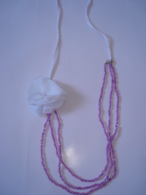 COLAR FLOR DE MIÇANGAS COR: BRANCO COM ROXO R$ 13,00